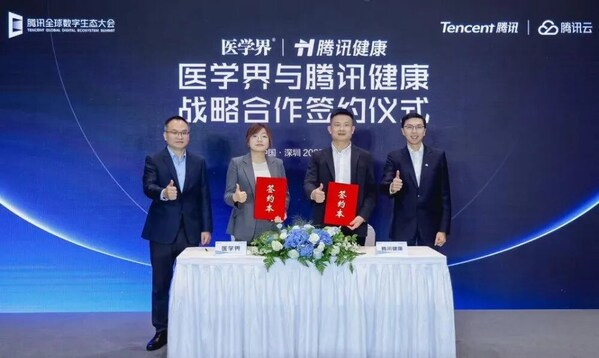 9月16日,騰訊全球數(shù)字生態(tài)大會期間,醫(yī)學界與騰訊健康正式簽署戰(zhàn)略合作協(xié)議。醫(yī)學界首席商務官毛及先生與騰訊健康總裁吳文達先生共同出席了簽約儀式。